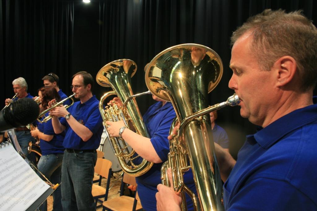 Ihren ersten öffentlichen Auftritt nach ca. einem Jahr Übungszeit absolvierte nun der Klarinettennachwuchs, der von Herrn Fehser, dem Leiter und Ausilder der Musikschule in der Mühle Ensemble unterrichtet wird. Sie überraschten mit dem bekannten Titelsong aus der Muppet Show. Unterstützt von einigen Musikern des Musikzuges spielten nun alle Nachwuchsbläser gemeinsam, die Stücke „Pengiuns on Parade“ und „Linda’s Samba“. Mit den fetzigen Stücken „Swinging Shepard Blues“ und „Tirjuana Taxi“ zeigten sieben Bläser des Musikzuges, was in mehreren Jahren Ausbildung und Routine möglich ist.