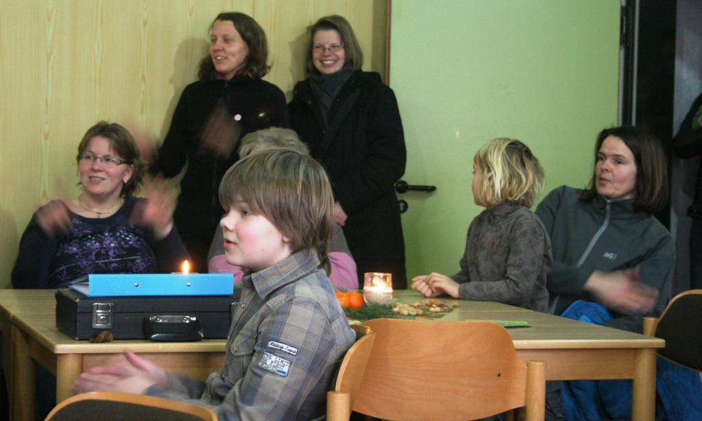 Nach ca. einer Stunde ist es geschafft. Nun müssen sich die Kinder noch verbeugen, denn das gehört dazu, wenn man Applaus bekommt. Dann dürfen sie sich als Erste am Adventsbuffet mit Christstollen, verschiedenen Kuchen, Knabbereien und leckeren Getränken bedienen.