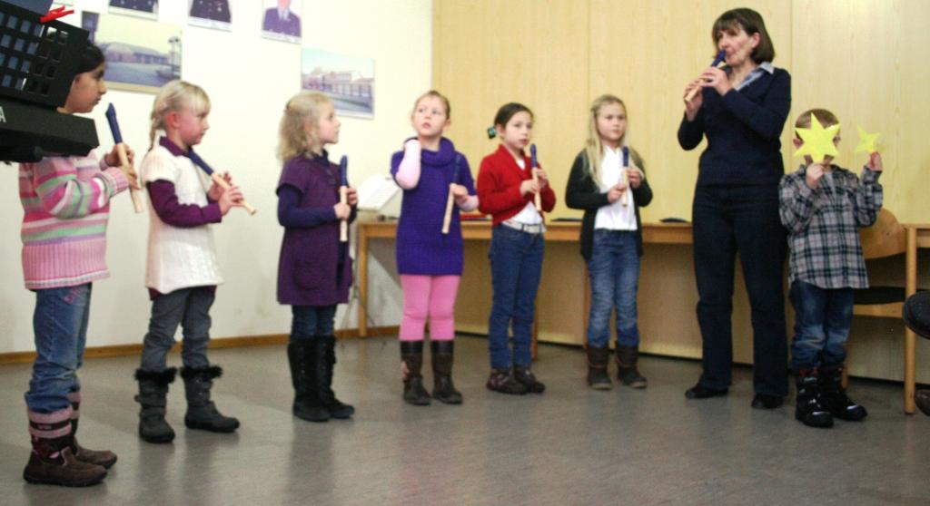 Mit viel Eifer präsentierte der musikalische Nachwuchs ein erstes Weihnachtskonzert am 18. Dezember im Feuerwehrhaus. Im Mittelpunkt standen die Flötenkinder um Annemarie Linde, die erst vor zwei Monaten die Ausbildung begonnen haben.